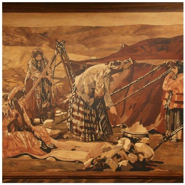 Moaraq comes from the combination and integration of colored wood according to the predetermined design; it means that the construction of a spruce is a raw material of wood, but rather abundantly combines this art with other arts. For example, carved wooden arts and Moaraq can be used jointly in a work.